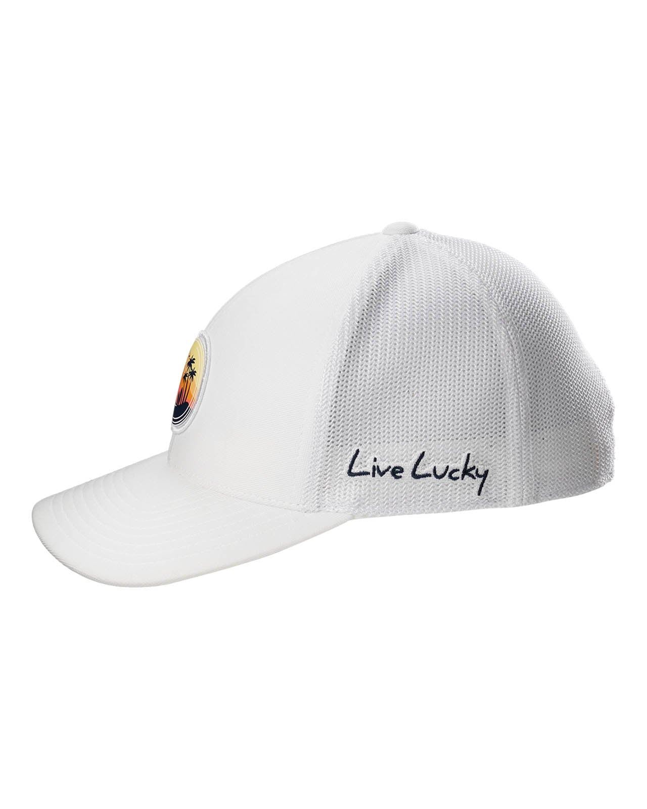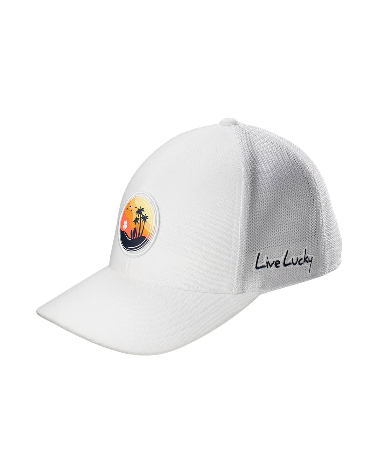Confeccionado en blanco clásico con malla blanca transpirable, este sombrero presenta un parche con palmeras contra una puesta de sol. La elegante construcción te mantiene fresco y cómodo, ya sea que vayas a la playa o pases el rato con amigos, y el snapback ajustable garantiza un ajuste perfecto en todo momento.