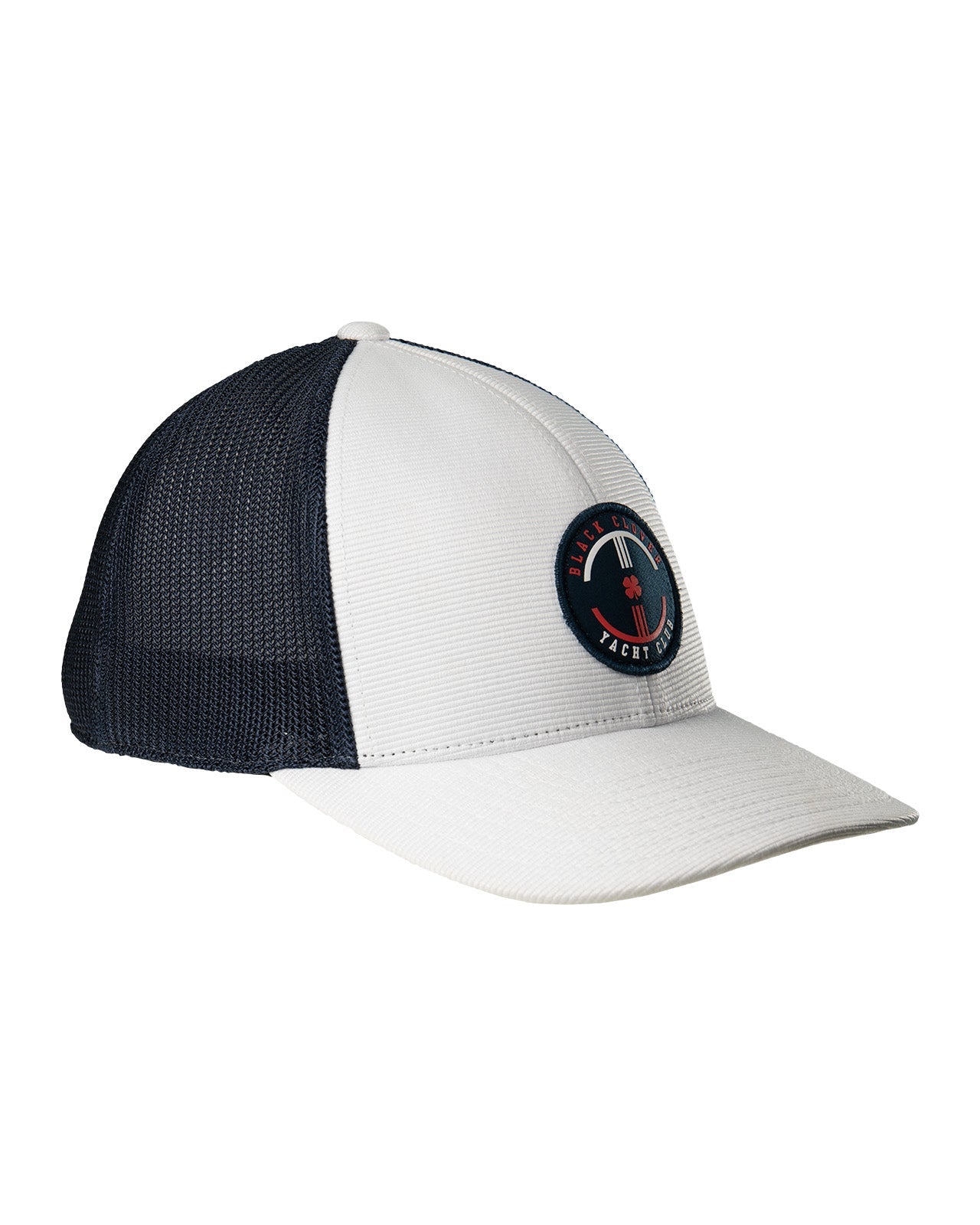 El estilo se une a la sofisticación con nuestra gorra Yacht Club. Esta gorra ajustable cuenta con un panel frontal blanco con malla azul marino transpirable, adornada con un parche circular impreso en HD. Diseñado para un ajuste fresco y transpirable, este sombrero seguramente elevará tu atuendo y aportara un aire de sofisticación a cualquier evento.