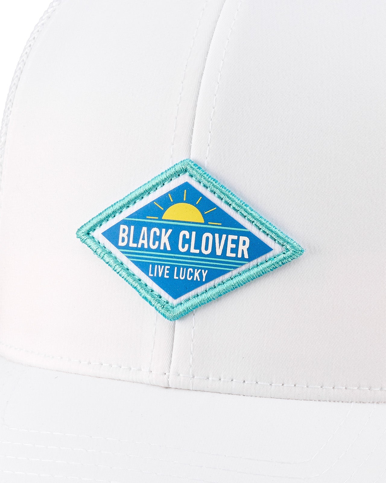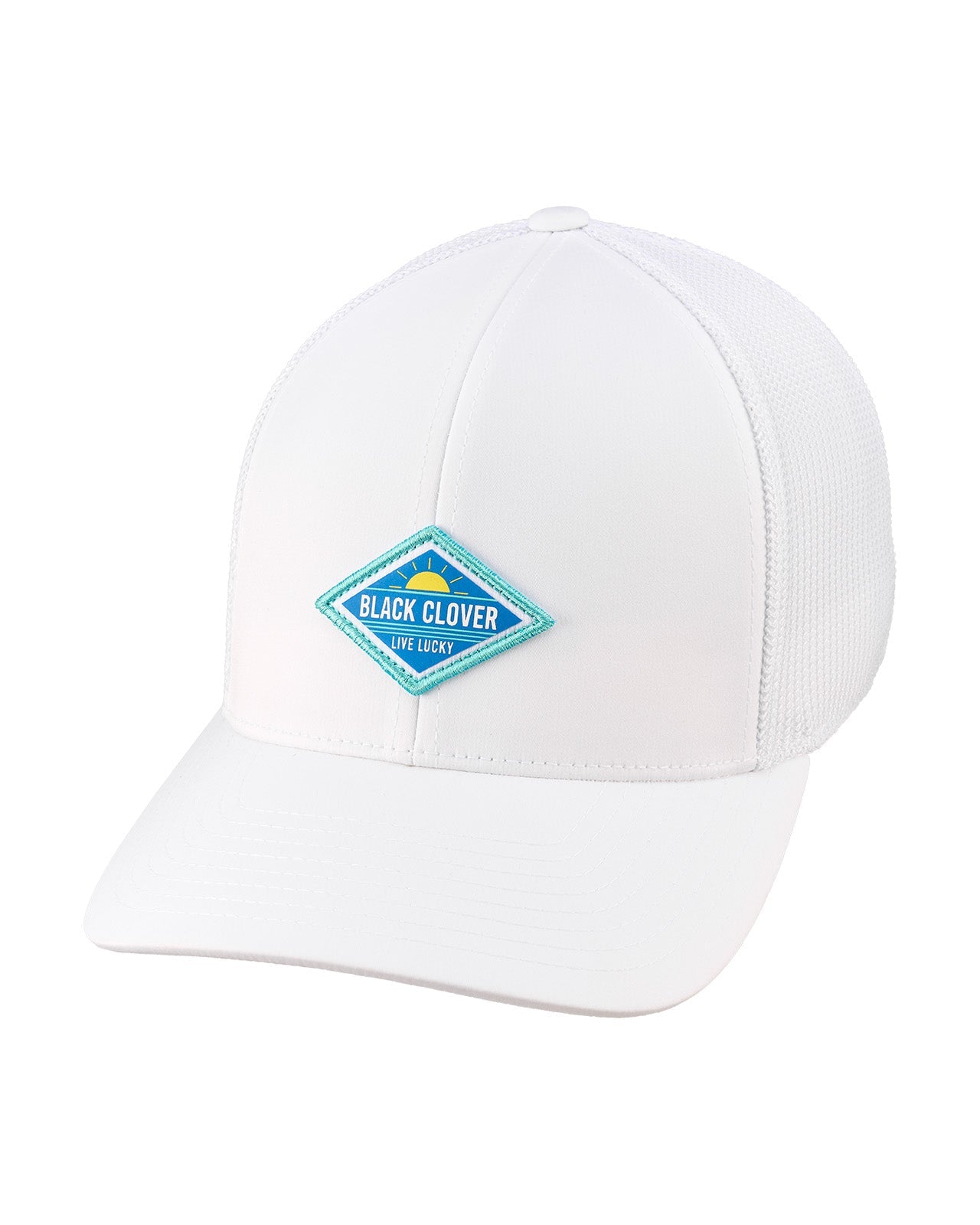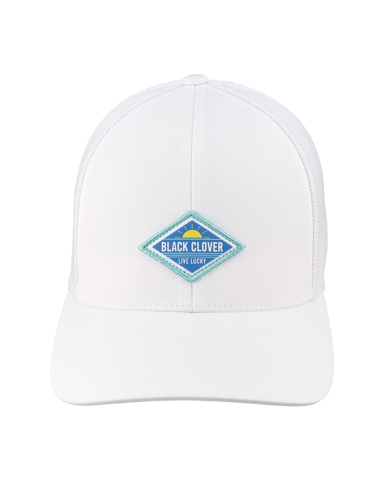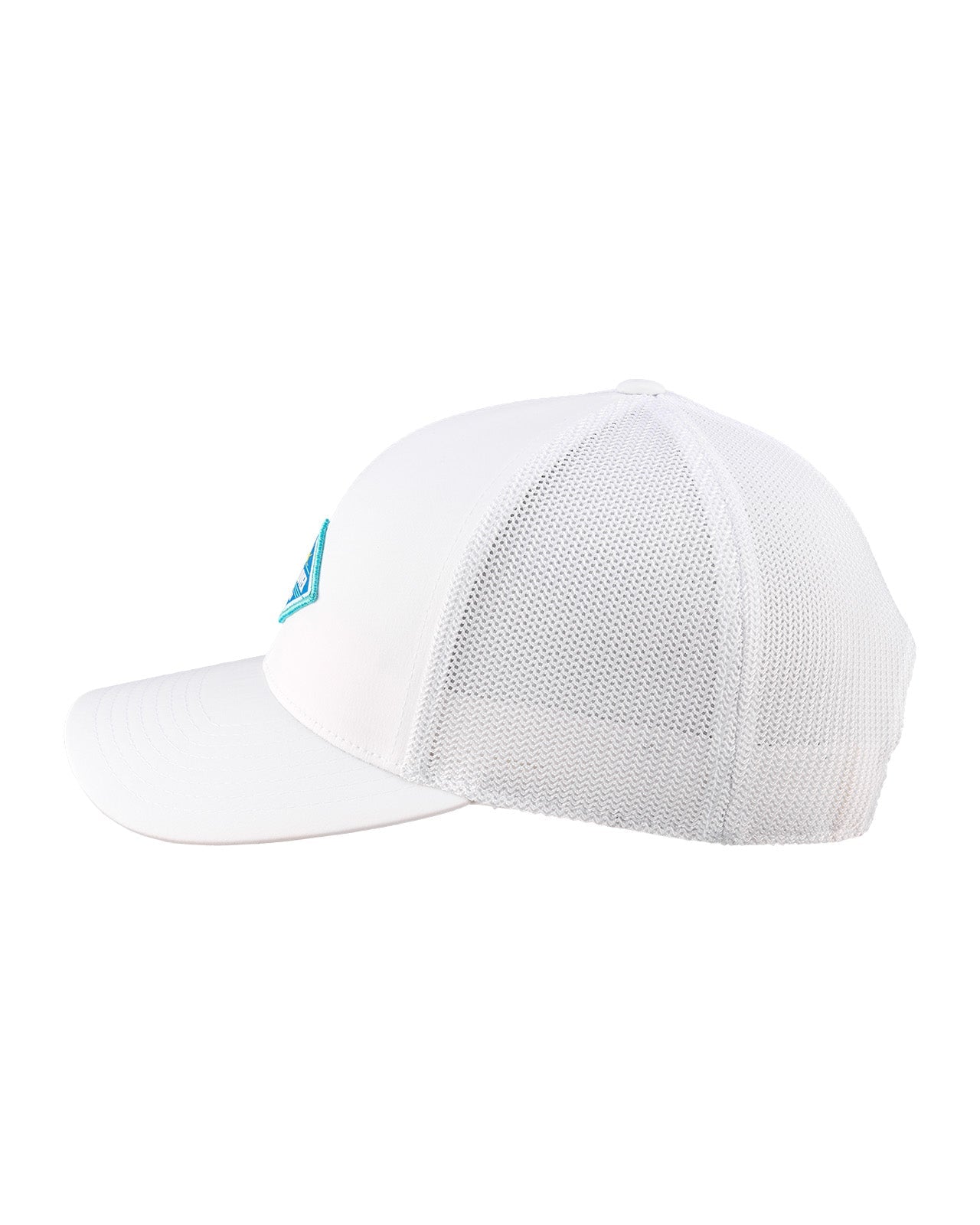 Un look elegante comienza Con Glow, esta gorra perfectamente blanca, combinada con una malla transpirable blanca, adornada con un parche azul impreso HD en forma de diamante. Diseñado para un ajuste fresco y cómodo, este sombrero seguramente te hará lucir como la persona sofisticada que eres.