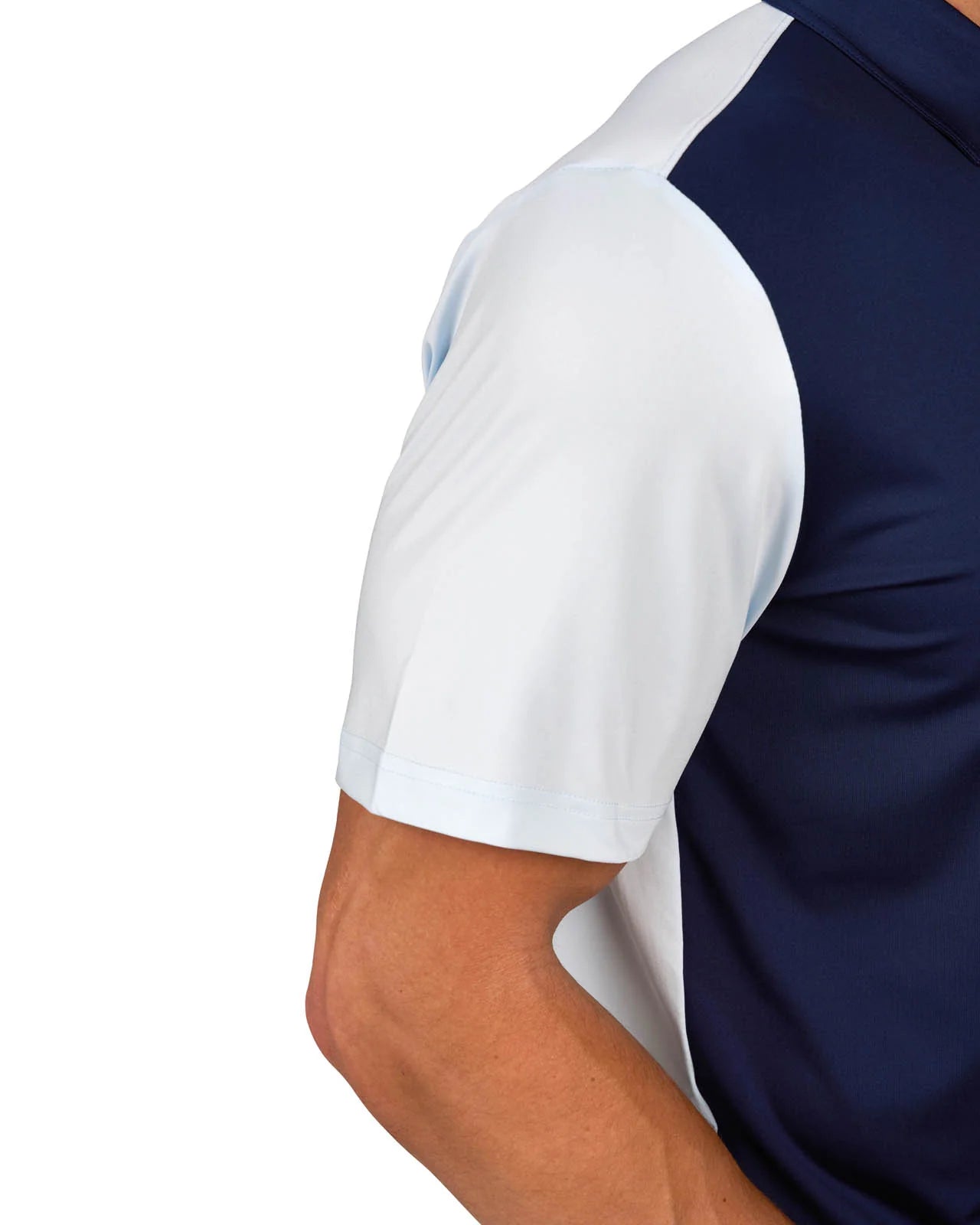 La Camisa Archie bicolor combina un estilo audaz con rendimiento. Con un frente azul marino, una parte posterior azul hielo, el icónico trébol en el frente y 'Live Lucky' en la parte posterior.